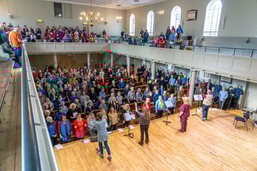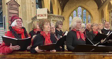 We do like to perform and often for charity. We have also enjoyed joining with singers from Claire's two other choirs at The South West Choir Convention in Bristol - here we get to learn and sing new songs with over 400 people in St George's Hall. It's a great day out.