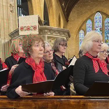 We do like to perform occasionally and often for charity. We have also enjoyed joining forces with singers from Claire's two other choirs at The South West Choir Convention in Bristol - here we get to learn and sing new songs with around 600 people in St George's Hall.